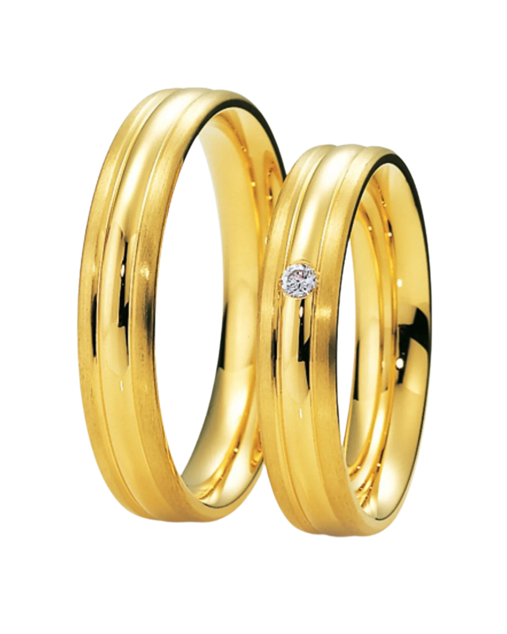 Alliance Breuning Classic en or jaune 585, finition mate brossée longitudinale et polie, avec 1 diamant blanc de 0.03 ct.