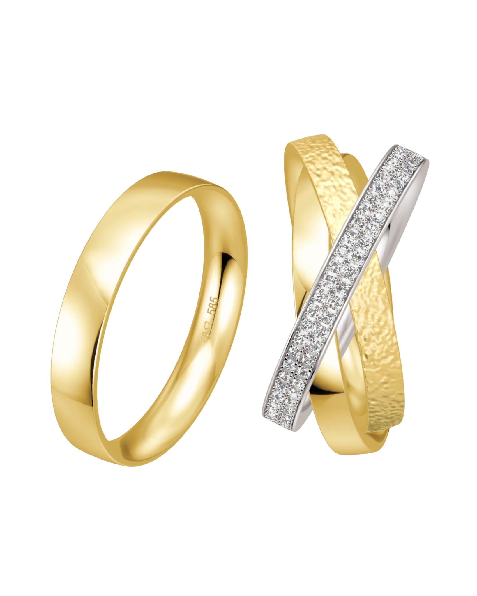 Alliance Breuning Roll Ring or blanc et jaune 585 diamants 3 mm