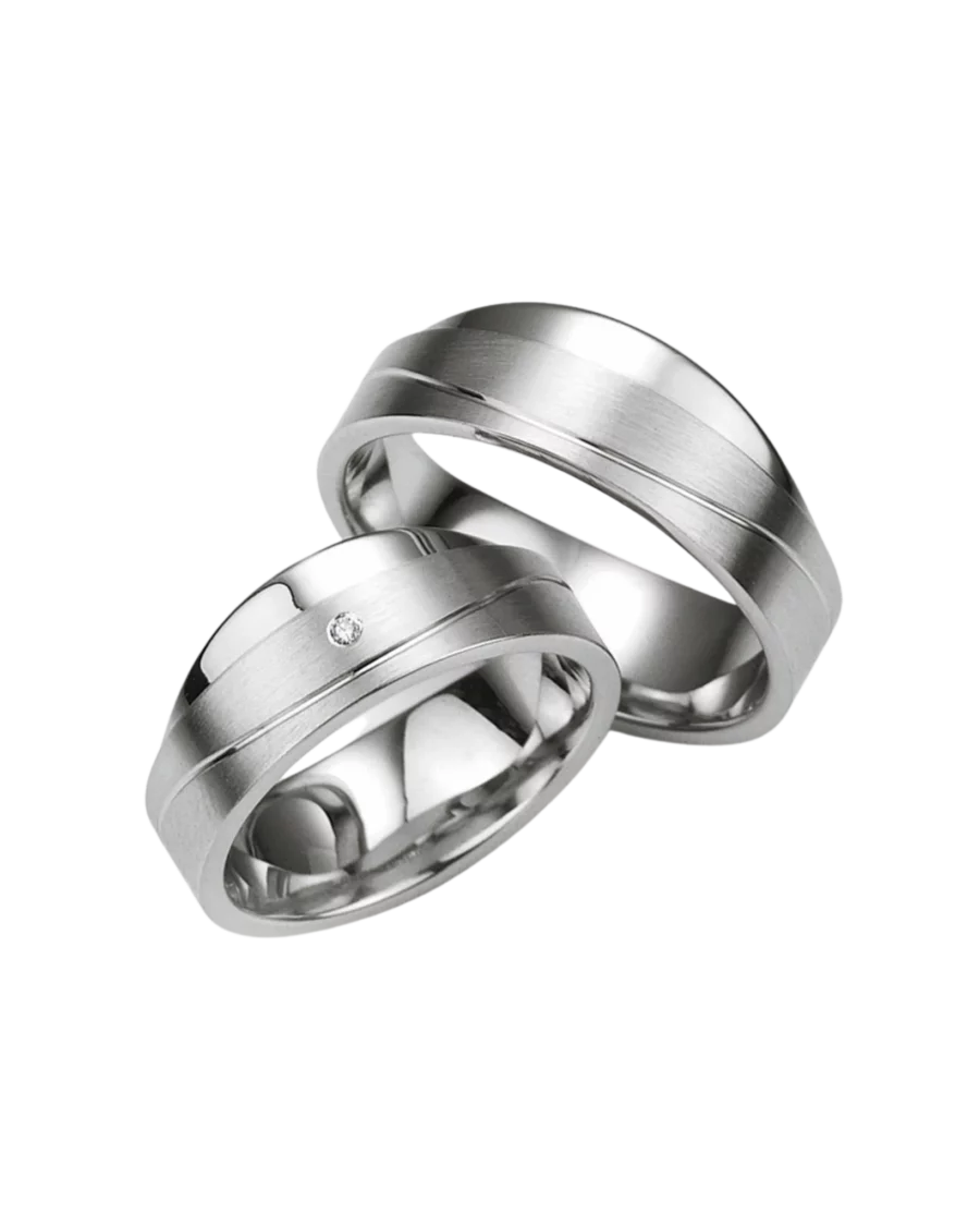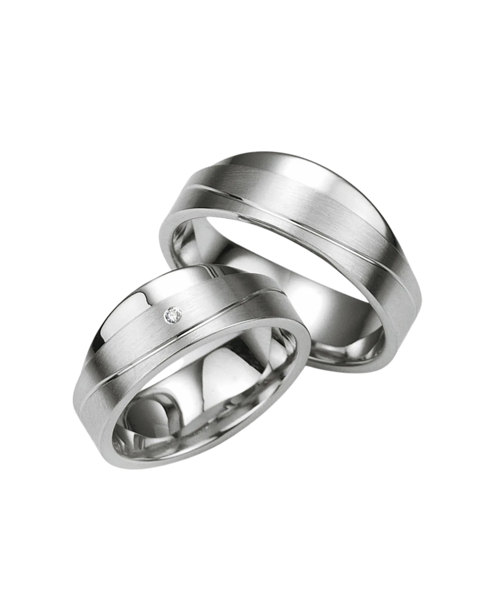 La collection Silver with Diamonds Breuning réunit des alliances en argent 925, avec diamant sur chaque modèle. Certains modèles associent l’argent à des détails bicolores, tandis que d’autres privilégient une ligne plus sobre et uniforme. L’ensemble propose un style contemporain, net et accessible, avec un équilibre entre finition satinée, formes simples et éclat discret de la pierre.