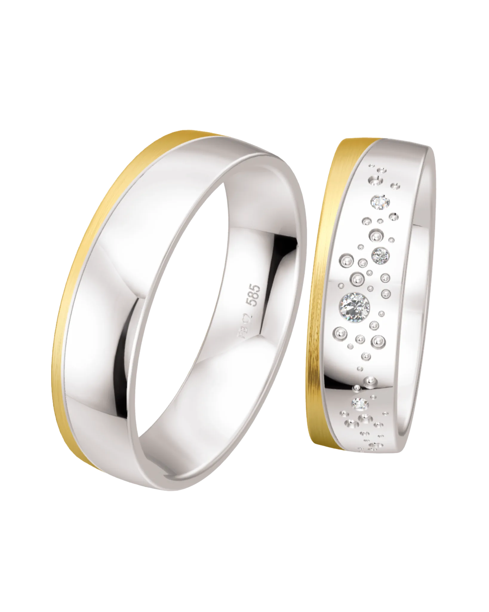 Alliance Breuning Sparkling en or jaune 585 et or blanc 585, finition mate brossée longitudinale et polie, avec 4 diamants blancs pour 0.054 ct.