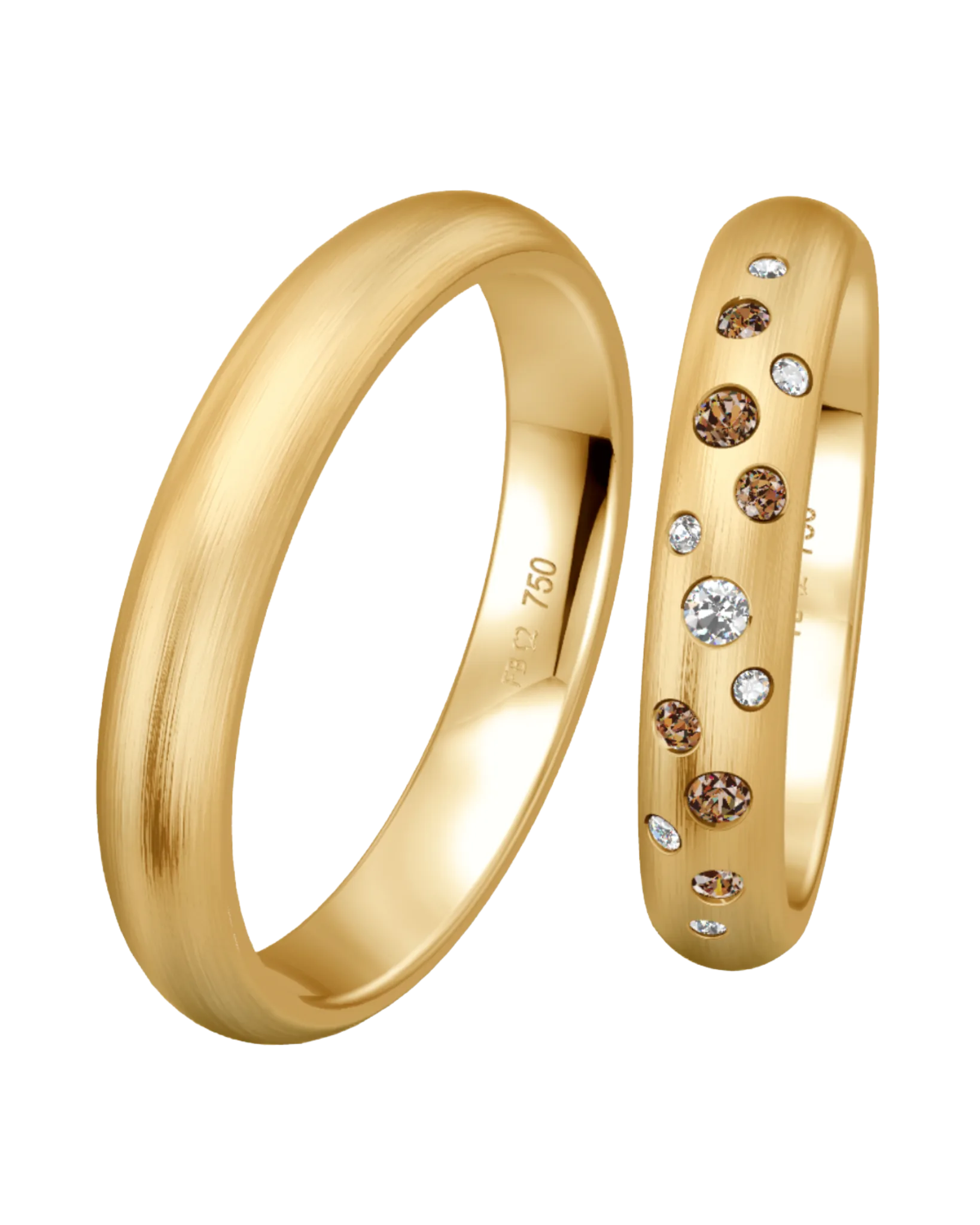 Alliance Breuning Sparkling en or miel 750, finition mate brossée longitudinale, avec 13 diamants pour 0.192 ct.