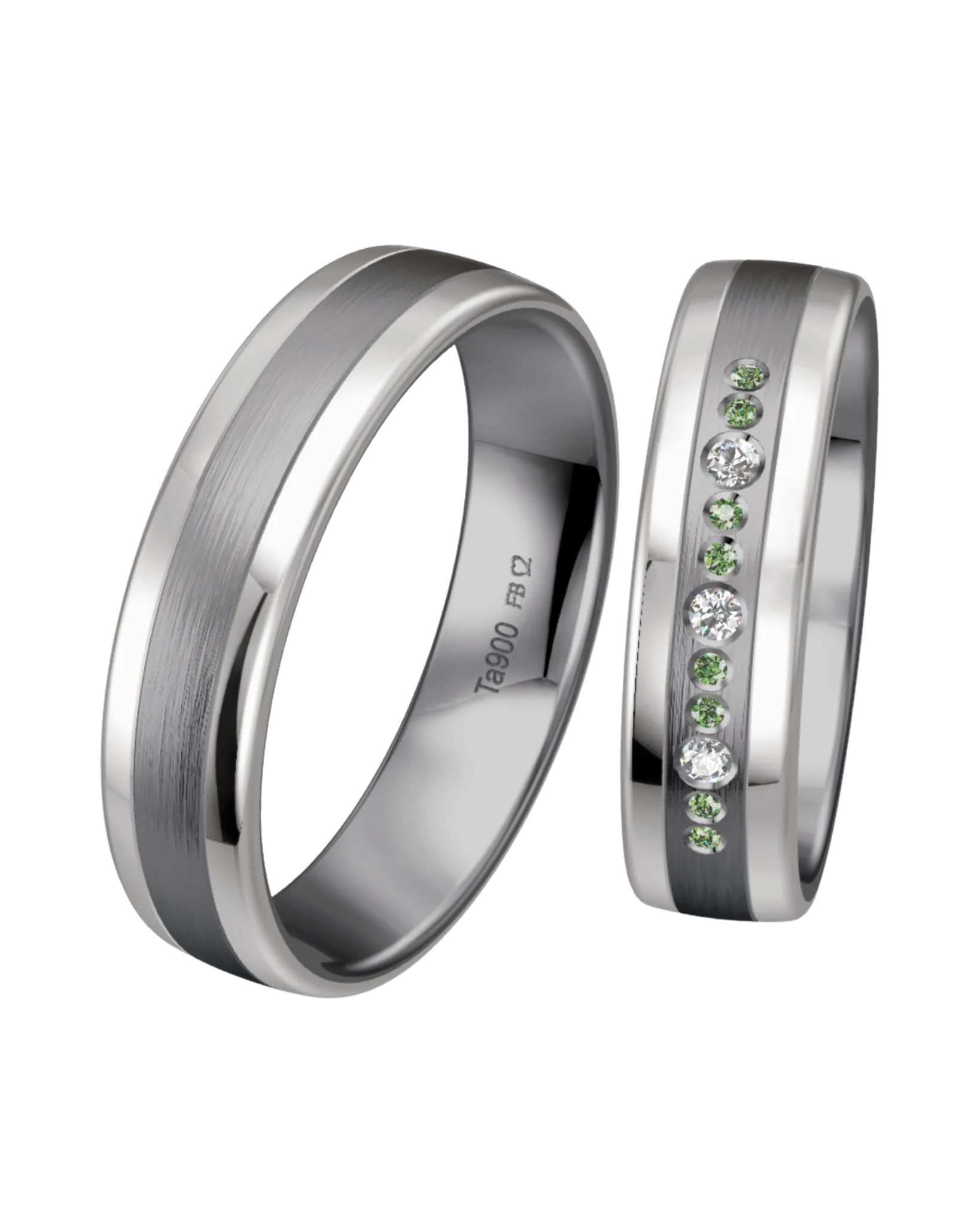 La collection Tantal Breuning met en avant le contraste du tantale 900 avec l’or 585 et le diamant sur certains modèles. Les alliances présentent des lignes nettes, des volumes équilibrés et des finitions sobres, dans un registre contemporain et structuré. L’ensemble propose un style affirmé, avec une matière sombre et dense associée à des détails précieux plus lumineux.