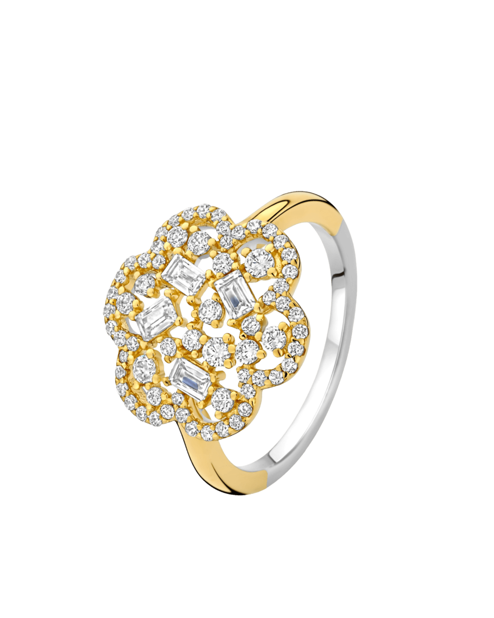 Bague fleur en argent 925 doré avec zirconia (taille 54)