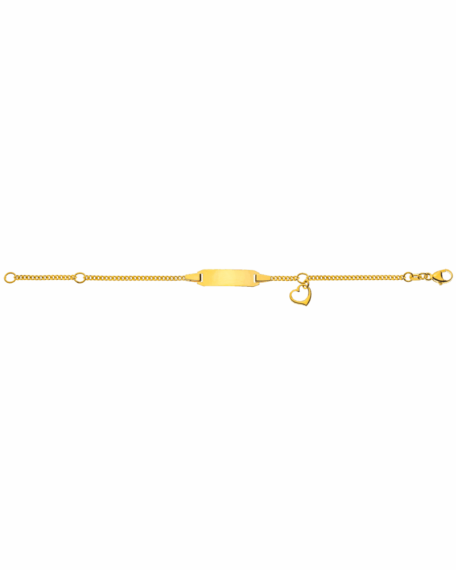 Bébé Bracelet Armor Diamant Or Jaune 750 14cm avec pendentif coeur gravure plaque rectangle long