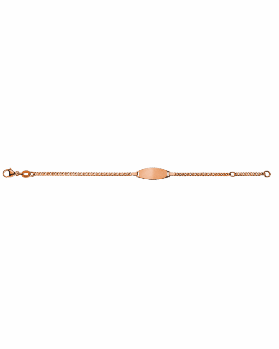 Bébé Bracelet Gourmette Or Rose 750 14cm avec plaque de gravure ovale