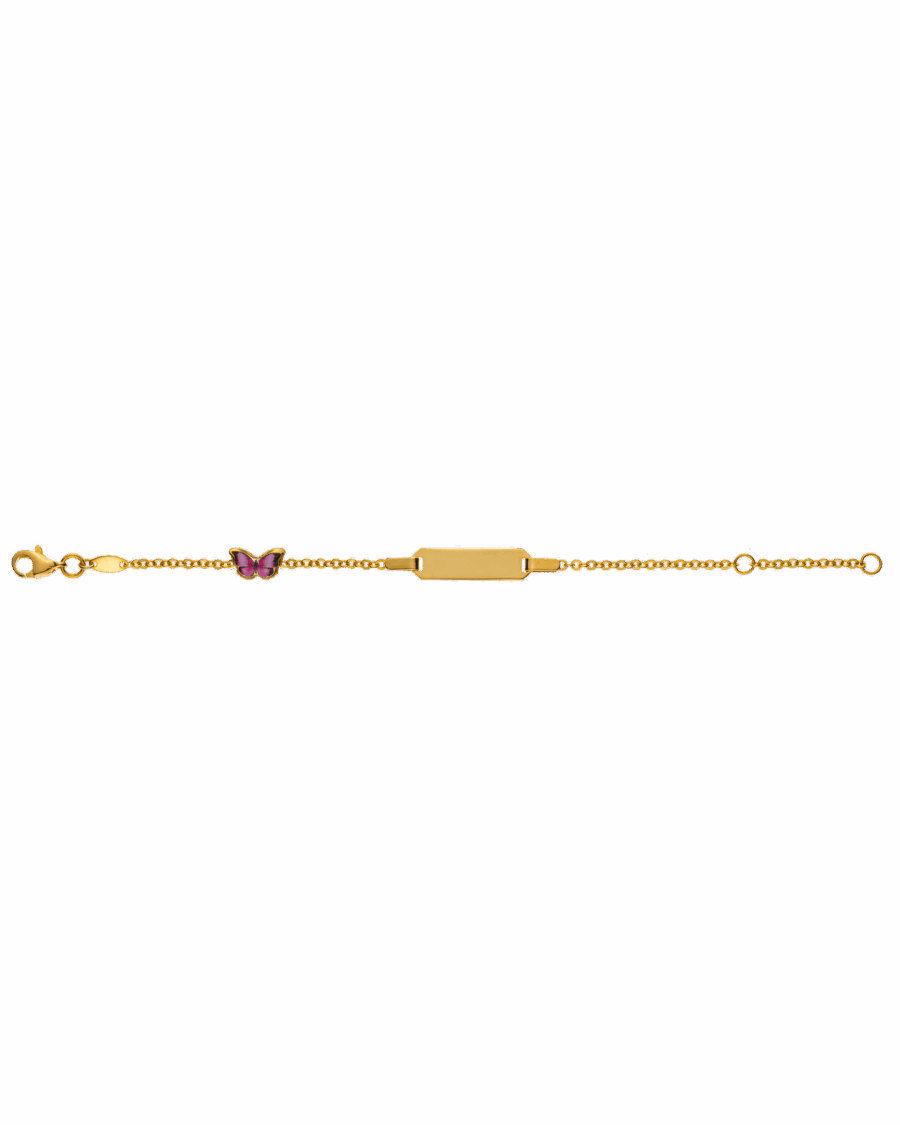 Bébé Bracelet Miroir Ancre avec 1 Papillon Or Jaune 375 14 cm avec plaque de gravure rectangulaire courte