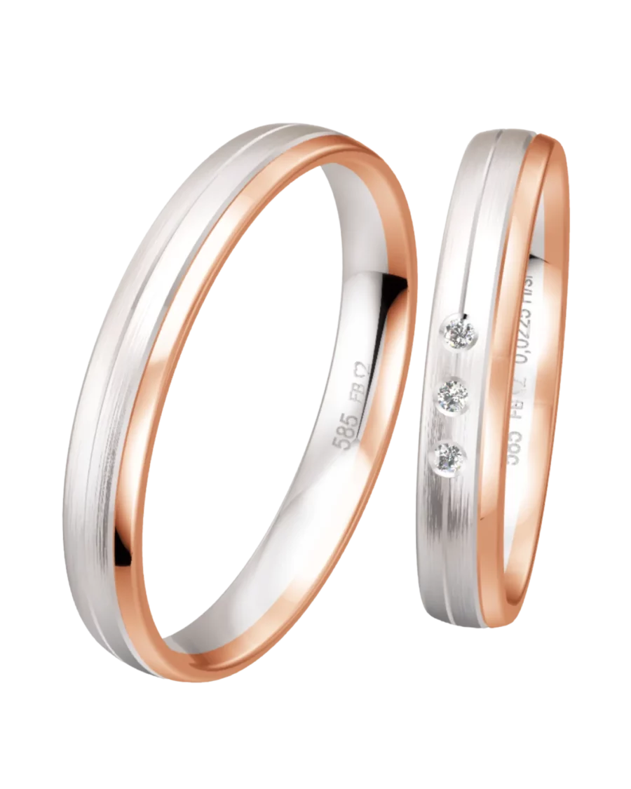 La collection Bicolor Breuning réunit des alliances en or 585 qui associent deux teintes d’or dans un design net et équilibré. Les modèles jouent sur le contraste entre or blanc et or rouge, ou entre or jaune et or blanc, avec diamant sur certaines versions. L’ensemble propose un style sobre, contemporain et précis, centré sur l’harmonie des couleurs et la simplicité de la ligne.
