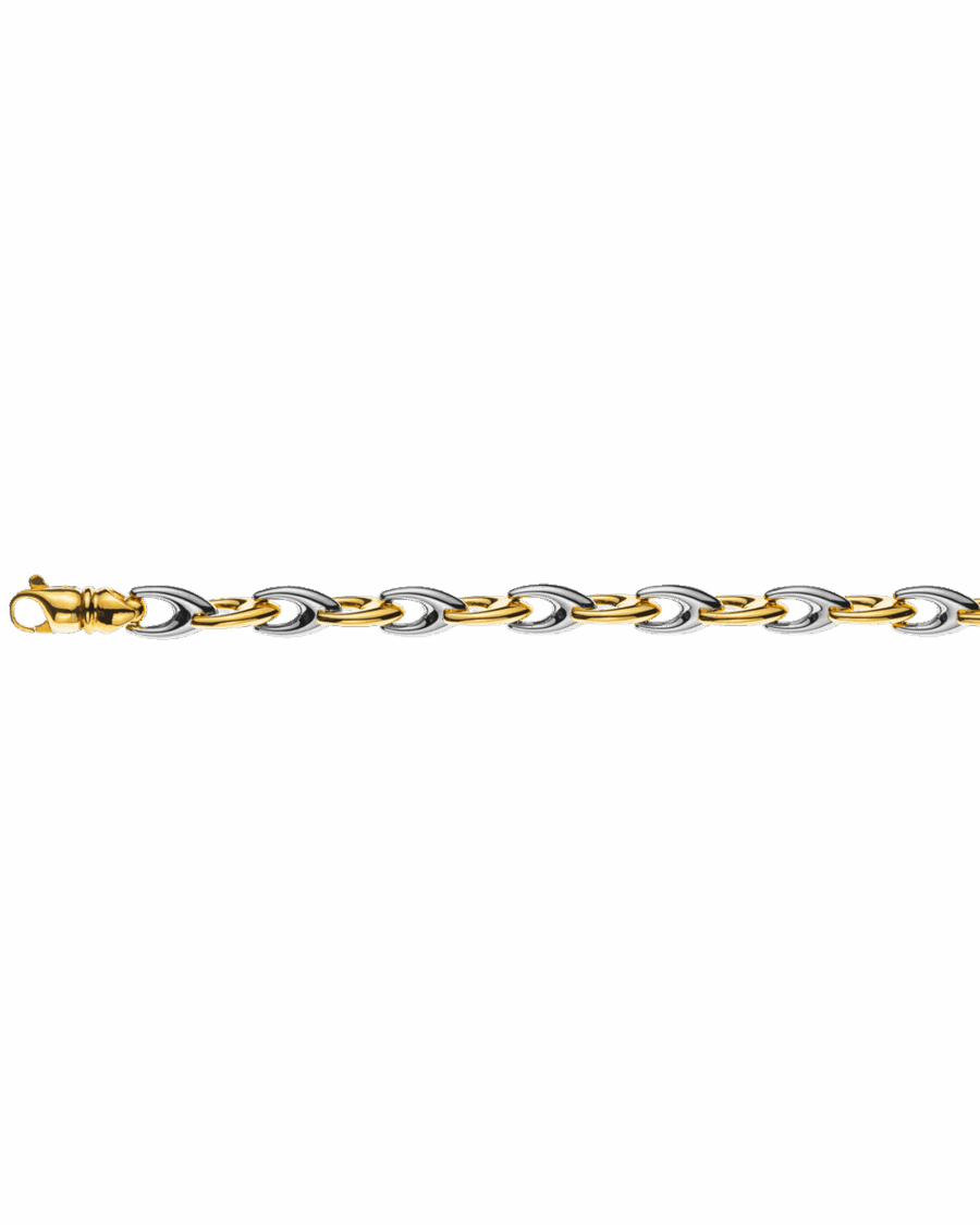 Bracelet Bicolore (or jaune/blanc) 750, 19cm, en forme de V, 6mm