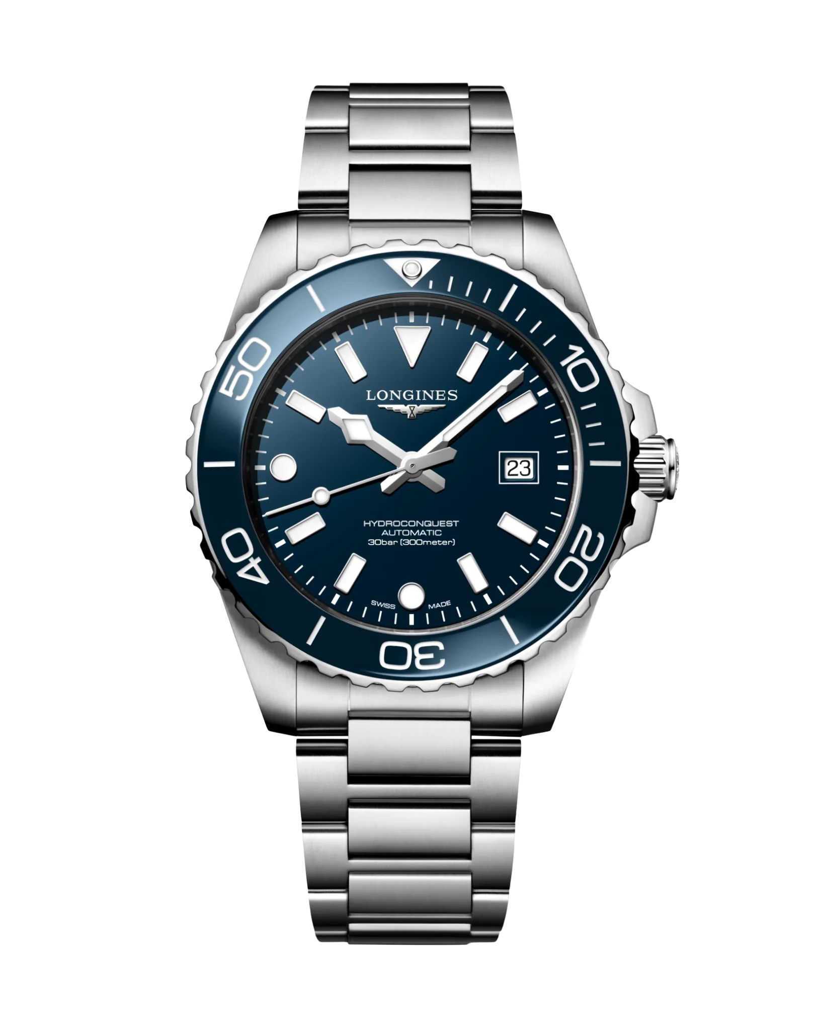 La Longines HydroConquest 42mm incarne l’équilibre entre performance technique et design contemporain. Issue de la collection HydroConquest, elle est conçue pour répondre aux exigences de la plongée tout en restant adaptée à un usage quotidien. Son boîtier en acier inoxydable de 42mm associé à une lunette en céramique assure robustesse et lisibilité.