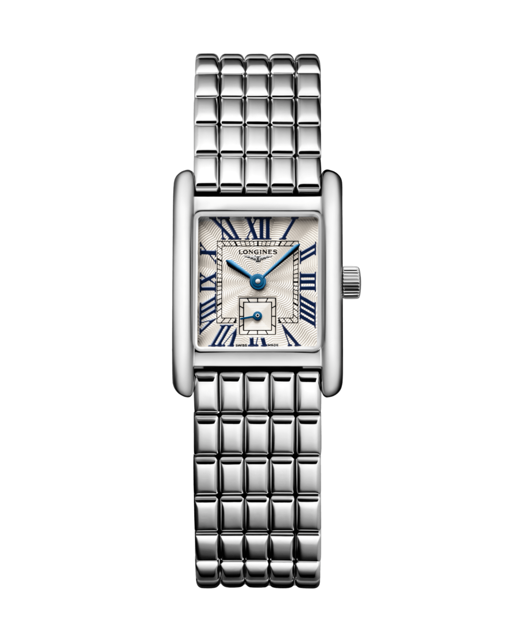 La Longines Mini DolceVita Acier est une montre rectangulaire élégante, animée par un mouvement quartz fiable et conçue pour offrir un port quotidien confortable. Son cadran argenté flinqué, ses chiffres romains peints et sa petite seconde à 6 h rendent hommage à l’esthétique classique de la ligne DolceVita.