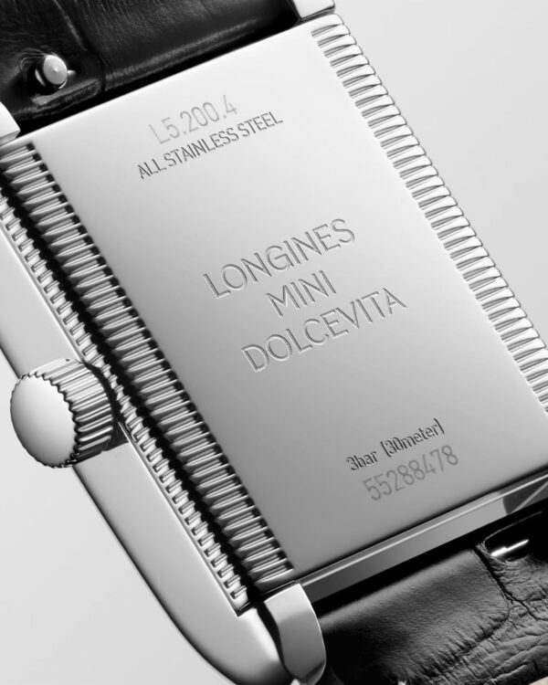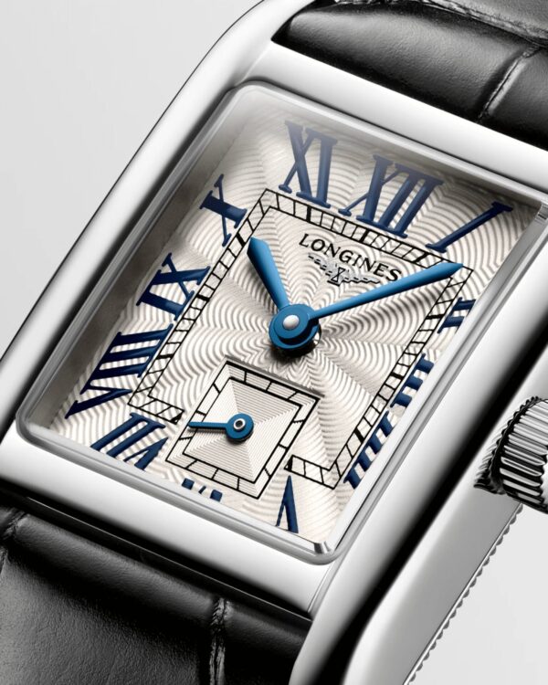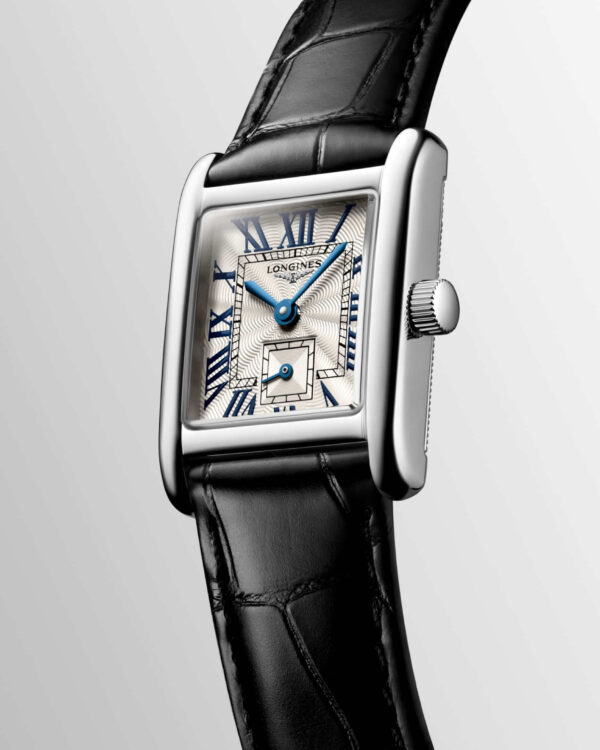 La Longines Mini DolceVita Cuir reprend l’élégance intemporelle de la collection dans une version plus habillée, grâce à un bracelet cuir qui apporte chaleur, finesse et confort au poignet. Animée par un mouvement quartz fiable, elle conserve le cadran argenté flinqué, les chiffres romains peints et la petite seconde à 6 h qui caractérisent l’esthétique DolceVita.