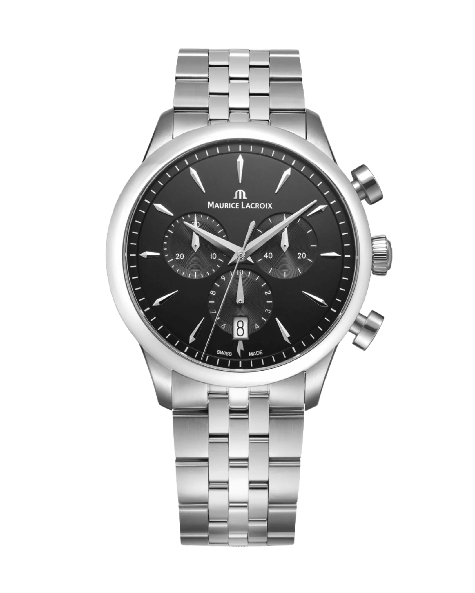 La montre chronographe Maurice Lacroix 1975 associe design vintage et chronographe quartz précis dans un boîtier acier de 40mm au style équilibré et intemporel.
