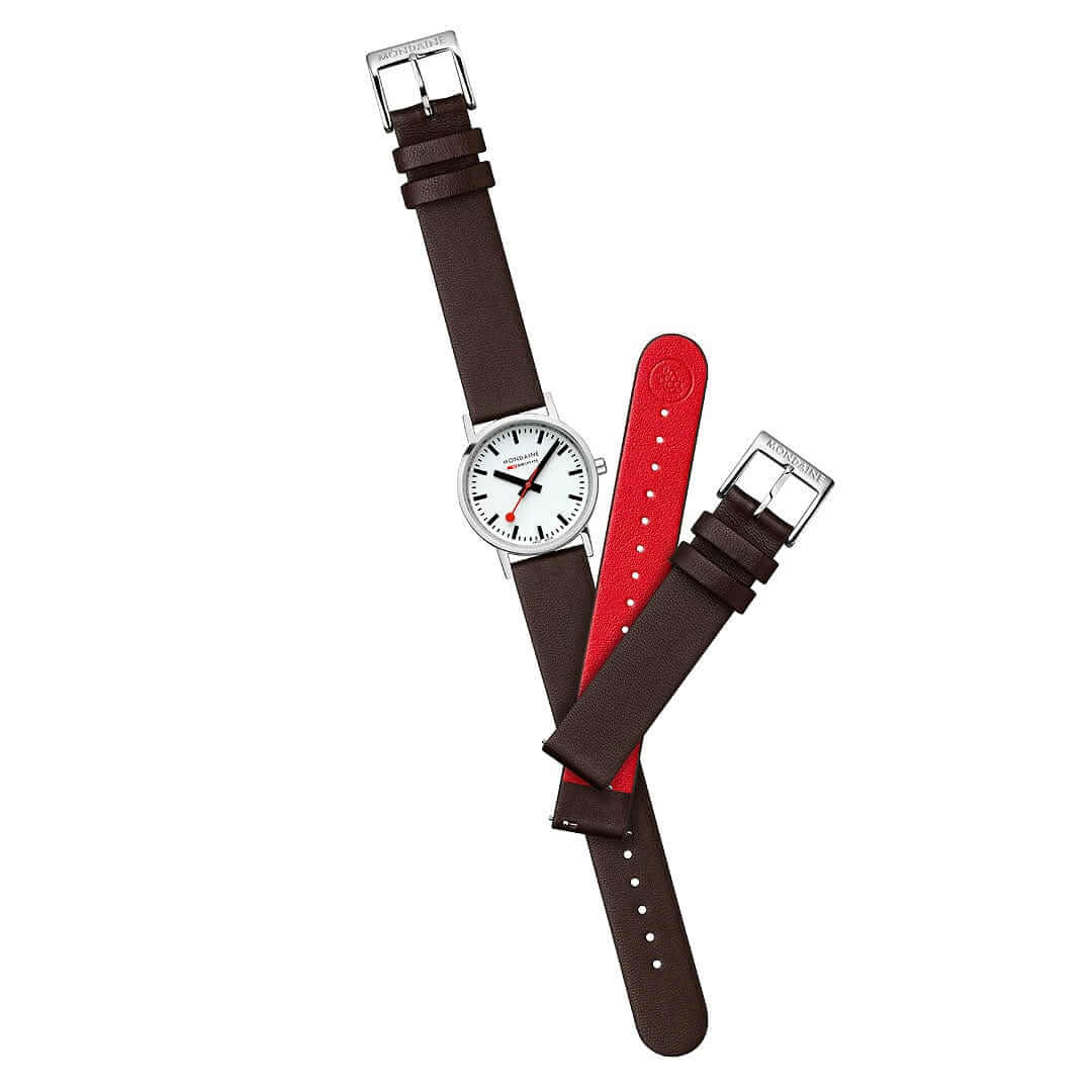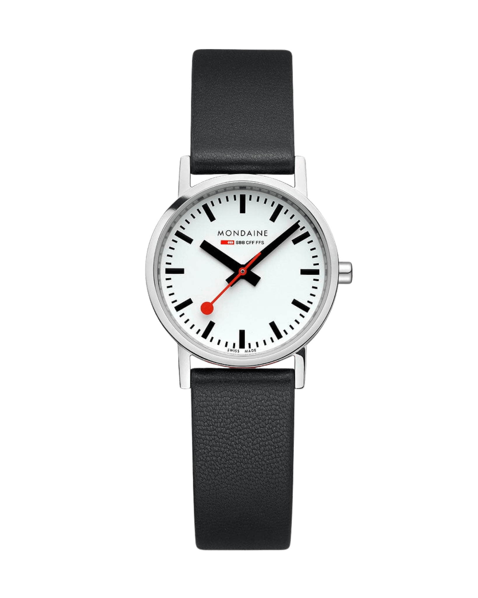 La Montre Mondaine Classic 30mm cuir vegan incarne l’essence du design horloger suisse minimaliste. Inspirée de l’horloge ferroviaire officielle, elle associe lisibilité, proportions équilibrées et engagement durable grâce à son bracelet en cuir vegan de raisin.