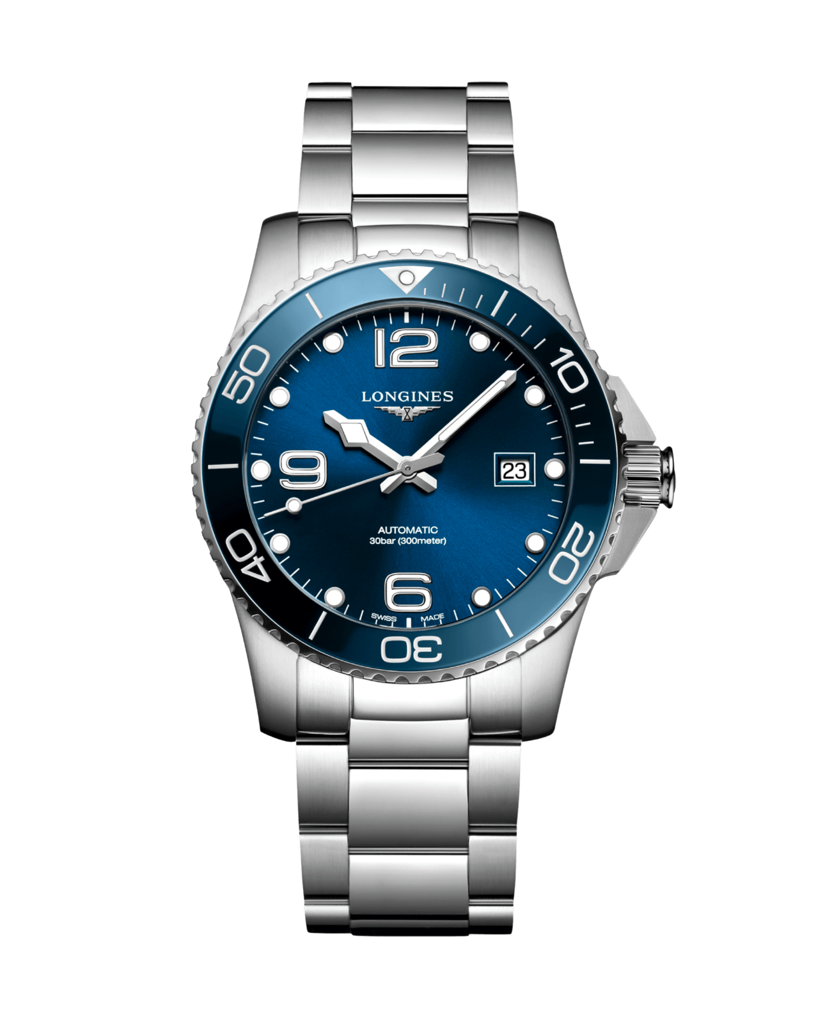 La Longines HydroConquest Bleu s’inscrit dans la collection dédiée aux sports nautiques. Conçue en acier inoxydable et dotée d’une lunette en céramique, elle associe robustesse, lisibilité et performance. Son étanchéité de 30 bar en fait une montre adaptée aux environnements aquatiques exigeants.