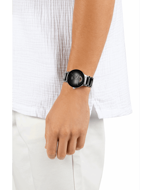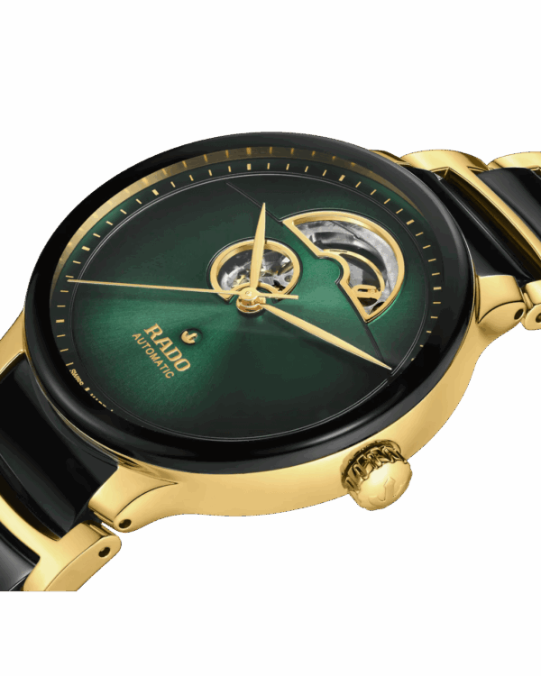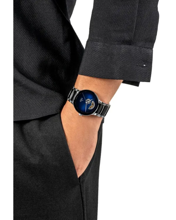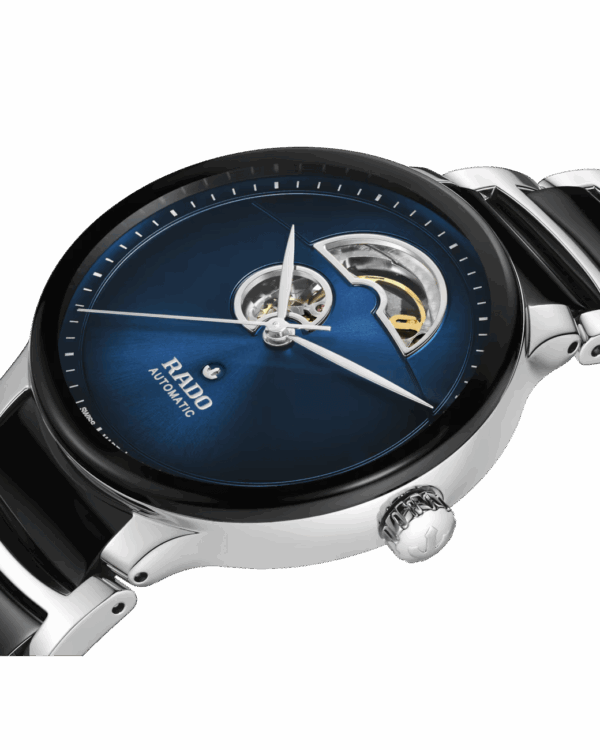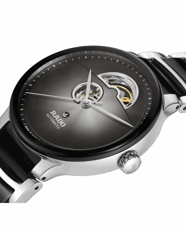 La Rado Centrix Automatic Open Heart met en valeur la beauté du mouvement mécanique grâce à son cadran ajouré, signature de cette déclinaison raffinée de la collection Centrix.