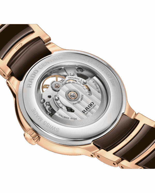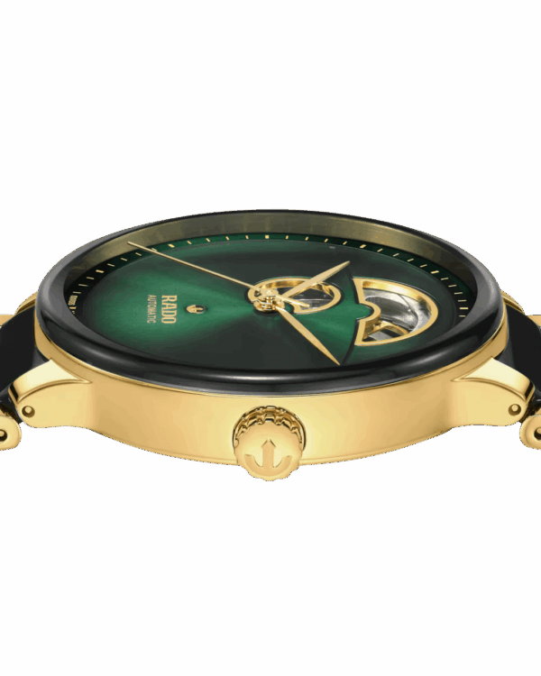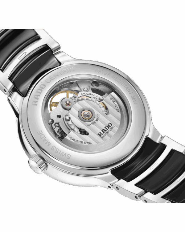 Testée dans cinq positions, cette montre illustre l’exigence technique de Rado. Le fond de boîtier transparent permet d’admirer les finitions du calibre et son oscillation fluide.