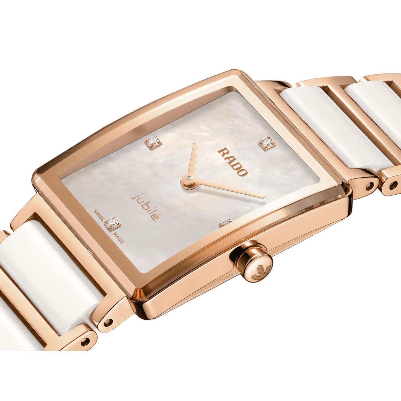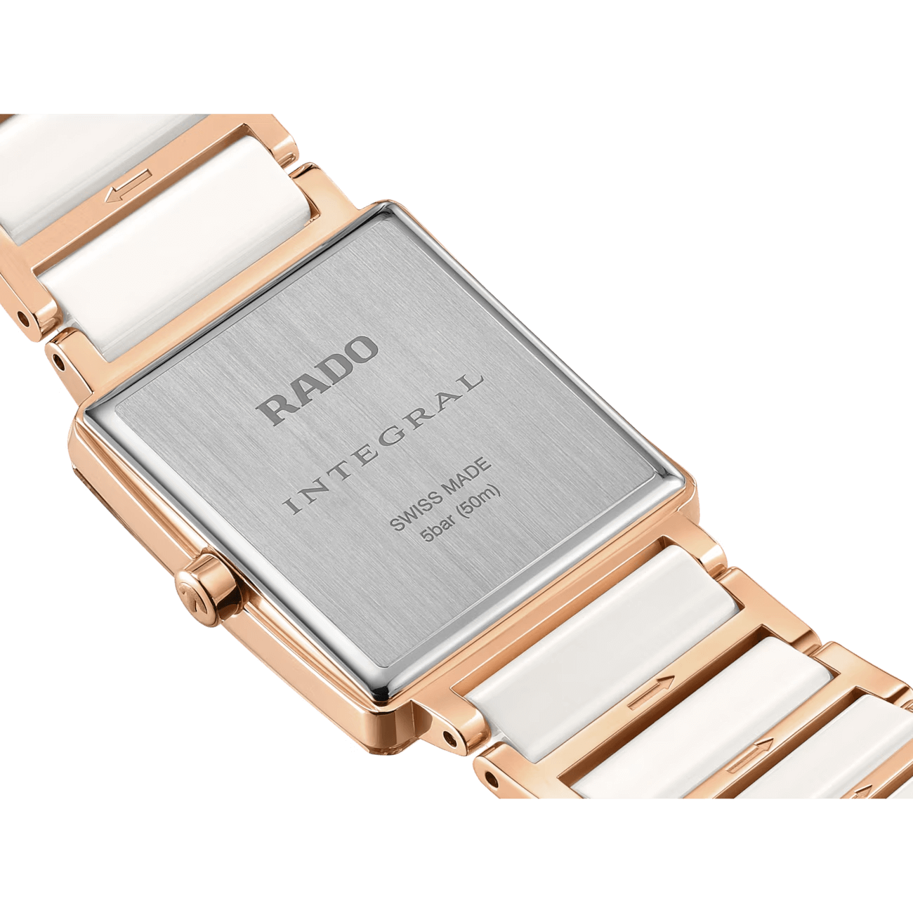 La Rado Integral Diamonds 23mm réunit les codes esthétiques emblématiques de la collection Integral : une silhouette rectiligne, un cadran épuré rehaussé de diamants et l’alliance de matériaux techniques. Son format de 23 mm et son mouvement quartz précis en font un modèle élégant et confortable au quotidien.